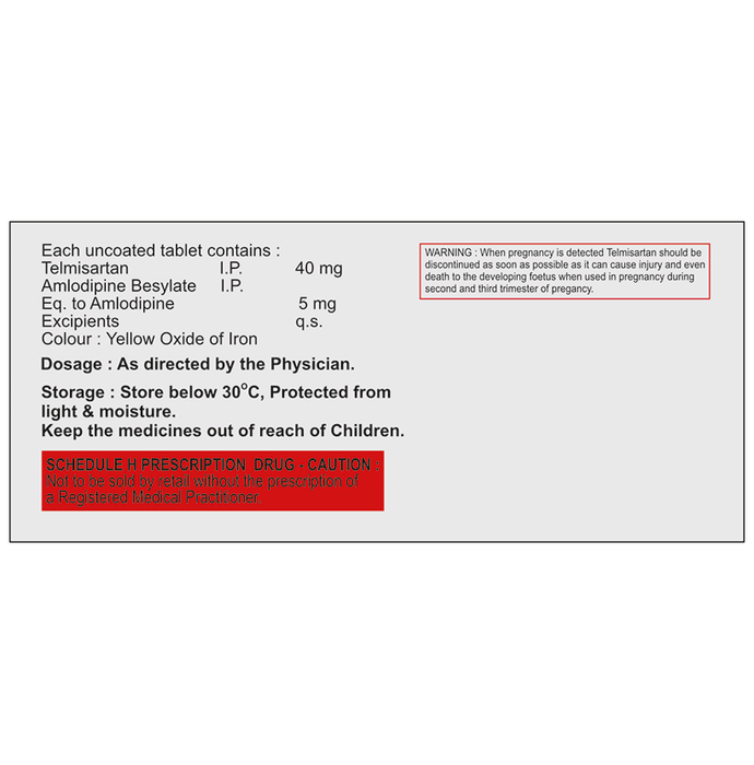 Marketer:Aura Lifecare Private Limited,Composition:Telmisartan (40mg) + Amlodipine (5mg),medicine_type:,