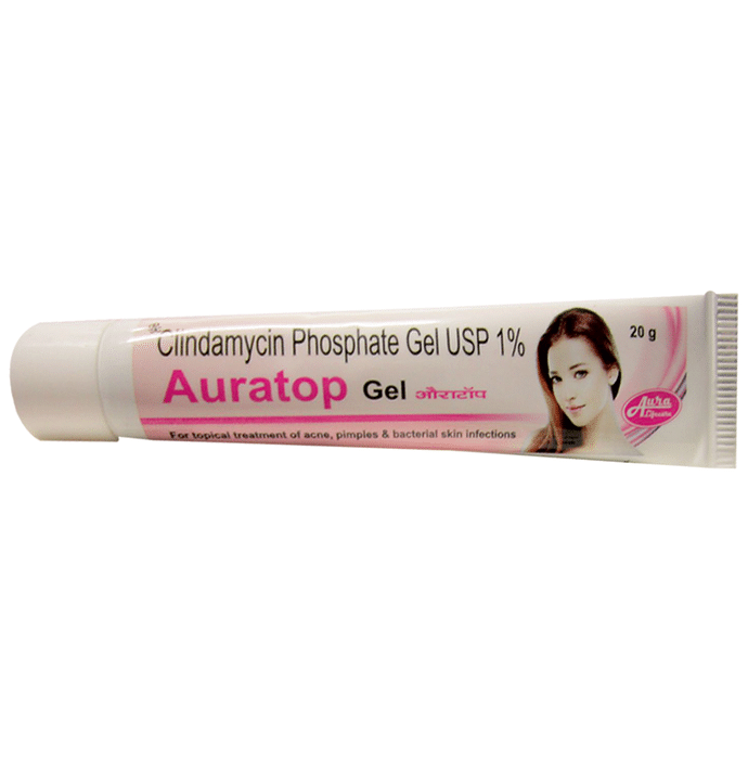Manufacturer details:                                        Marketer details:Aura Lifecare Private Limited | Factory & Regd. Office : Survey No. 254/14/1, Jarod-Savli Road, PO : Karachiya, Tal : Savli,Dist. : Vadodara, Gujarat – 391520 Mobile No: 75740 00807 / 92650 65012 CIN : U24230GJ2012PTC070929 GSTIN :,                                                Description:Auratop Gel is a topical antibiotic commonly prescribed for the treatment of acne, particularly when breakouts occur on the face, chest, or back. It works by reducing the number of acne-causing bacteria on the skin, thereby minimizing inflammation and preventing the formation of new pimples. Apply Auratop Gel in the exact dose and duration prescribed by your doctor. Make sure the skin is clean and dry. Spread a thin layer over the affected areas. Wash your hands before and after applying the medicine. Use it regularly, even if you don’t see immediate results, as it can take a few weeks to notice improvement. Avoid excessive exposure to the sun and use sunscreen, as Auratop Gel may make your skin more sensitive to sunlight.The most common side effects of Auratop Gel are dry skin, skin irritation, diarrhea, and gastrointestinal disturbances. These are usually mild and go away as your skin adjusts to the treatment. To reduce irritation, use a gentle moisturizer or consult your doctor if the symptoms become bothersome. If you experience severe reactions, such as a rash, swelling, or difficulty breathing, stop using it and seek medical help immediately.While using Auratop Gel, avoid applying it to broken or irritated skin, and keep it away from your eyes, nose, and mouth. Be cautious with other acne treatments, as combining too many products can irritate the skin. If you have a history of digestive problems like colitis, let your doctor know before starting treatment, as Auratop Gel may increase the risk of certain side effects. Pregnant or breastfeeding women should also consult their doctor before using this medicine.