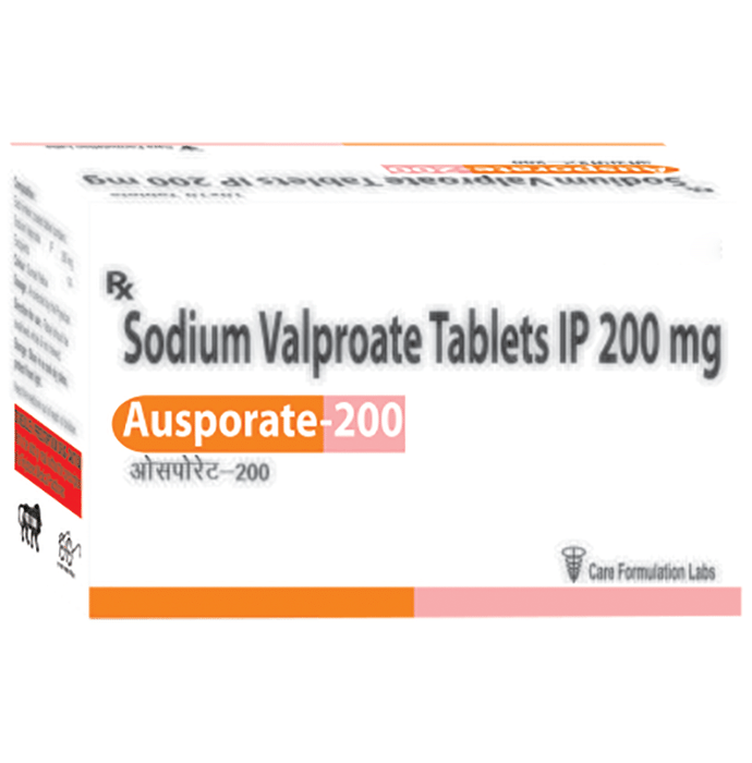 Manufacturer details:                                                                                Marketer details:Care Formulation Labs Pvt Ltd | D-1659, DSIIDC, Narela Industrial Area, Delhi, 110040,                                                                                                Description:Ausporate 200 Tablet belongs to a group of medicines called anti-epileptics. It is used to treat conditions such as epilepsy and bipolar disorder. It works by preventing extreme mood swings and abnormal brain signals that trigger seizures (fits). It also helps in the prevention of migraines. Ausporate 200 Tablet can be used alone or in combination with other medicines. Your doctor will decide the correct dose for you. This may increase gradually until your condition is stable. This medicine may take several weeks to work but it is important to take it regularly to get the benefit. Do not stop taking it, even if you feel fine, unless your doctor advises you to. You may have more seizures, or your bipolar disorder may get worse.The most common side effects of this medicine include skin rashes, headache, feeling or being sick, difficulty sleeping, dizziness and feeling sleepy or drowsy. Most side effects wear off, but if they bother you or do not go away, tell your doctor. There may be ways of preventing or reducing these effects. Long-term treatment can cause weakness in your bones (osteoporosis), increasing your risk of breaking a bone.Before taking this medicine, tell your doctor if you have kidney or liver problems, meningitis or depression or suicidal thoughts. Also let your healthcare team know about all other medications you are using as some may affect, or be affected by, this medicine, including contraceptive pills. If you are pregnant or breastfeeding, Ausporate 200 Tablet can be taken if it is clearly needed but the dose may be adjusted. You should avoid driving or riding a bicycle if this medicine makes you drowsy or dizzy. You may need frequent blood tests to check how you are responding to this medicine.