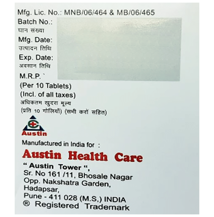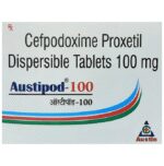 Manufacturer details:                                        Marketer details:Austin Health Care | P S Tower Magarpatta Rd, Opp to Nobel Hospital, Magarpatta Rd, Hadapsar, Pune – 411028, Magapatta City,                                                Description:Austipod 100 Tablet DT is an antibiotic medicine used to treat bacterial infections in your body. It is effective in infections of the lungs (eg. pneumonia), urinary tract, ear, nasal sinus, throat, and skin. It kills bacteria, which helps to improve your symptoms and cure the infection. Austipod 100 Tablet DT should be taken with food. You should take it regularly at evenly spaced intervals as per the schedule prescribed by your doctor. Taking it at the same time every day will help you to remember to take it. The dose will depend on what you are being treated for, but you should always complete a full course of this antibiotic as prescribed by your doctor. Do not stop taking it until you have finished, even when you feel better. If you stop taking it early, some bacteria may survive and the infection may come back. It will not work for viral infections such as flu or the common cold. Using any antibiotic when you do not need it can make it less effective for future infections.The most common side effects of this medicine include rash, nausea, and diarrhea. Taking this medicine along with some food may help to prevent indigestion and upset stomach. Consult your doctor if you find these side effects bother or worry you. Before using it, you should tell your doctor if you are allergic to any antibiotics or have any kidney or liver problems. This medicine is generally regarded as safe to use in pregnancy and breastfeeding if prescribed by your doctor. It may blur your vision or make you feel sleepy and dizzy. Do not drive if these symptoms occur.