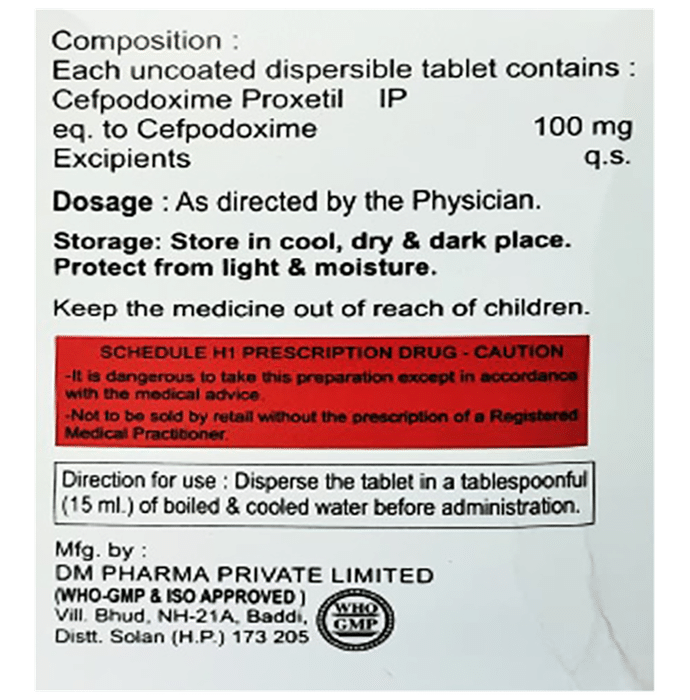 Marketer:Austin Health Care,Composition:Cefpodoxime Proxetil (100mg),medicine_type:,