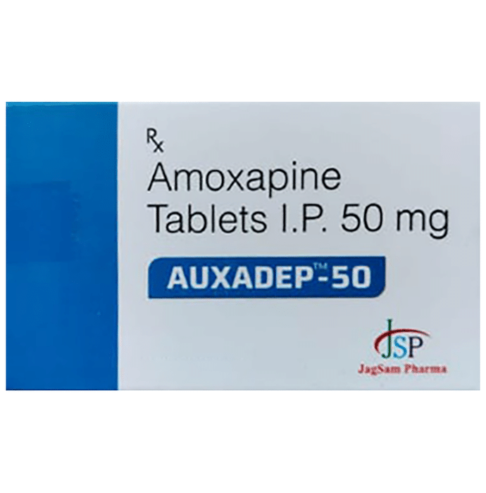Manufacturer details:                                        Marketer details:Jagsam Pharma | Shop No-2, Plot No-4, Sector-11, Balaji Heights, Sanpada, Navi Mumbai, Maharashtra – 400705, India,                                                Description:Auxadep 50 Tablet is a medicine that belongs to a class of drugs known as tricyclic antidepressants. It is used in the treatment of depression. It helps to enhance and brighten up the mood. Auxadep 50 Tablet is normally taken before bedtime because it can make you feel sleepy. It can be taken with or without food, but you should take it at a fixed time each day for better efficacy. The dose and duration will be decided by your doctor so that you get the right amount to control your symptoms. If you have missed any dose, take it as soon as you remember. Do not skip any dose and finish the full course of treatment even if you feel better. This medication must not be stopped suddenly without talking to the doctor. Your dose may be modified or gradually decreased before stopping the medication. This medicine usually shows a quick response and provides fast relief from the symptoms.The most common side effects of this medicine include increased heart rate, blurred vision, dryness in the mouth, and constipation. Initially, this medicine may also cause a sudden drop in blood pressure, especially when you change positions. It may even cause dizziness and sleepiness, do not drive or do anything that requires mental focus until you know how this medicine affects you. To lower the chances of dizziness, rise slowly if you have been sitting or lying down. It may also lead to weight gain in some people. Most of the common side effects tend to be mild. Your doctor may be able to suggest ways of preventing or reducing side effects if they bother you or do not go away. Serious side effects associated with this medicine are rare.Before taking this medicine, it is important to tell your doctor if you are taking or have recently taken any other medicines for the same or any other diseases. Pregnant and breastfeeding women should take this medicine with proper consultation and caution. This medicine is not addictive, but you can experience additional side effects (withdrawal symptoms) if you stop taking it suddenly. If you notice any sudden mood change or get suicidal or self-harm thoughts, you must consult the doctor without delay.