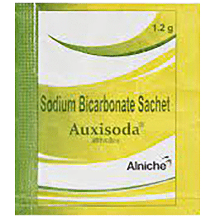 Manufacturer details:                                        Marketer details:Alniche Life Sciences Pvt Ltd | Alniche Life Sciences Pvt. Ltd., S-14, 2nd Floor, Janta Market Rajouri Garden, New Delhi – 110 027,                                                Description:Auxisoda Sachet is an antacid used in the treatment of indigestion, metabolic acidosis and used as an alkalinizing agent. It acts as a buffer that helps neutralize excess acid and restore a healthier pH level in the body. Auxisoda Sachet relieves irritation by producing carbon dioxide which neutralizes the acid present in the stomach. It also increases the pH of blood and urine, thereby correcting acid indigestion, heartburn. Additionally, it helps in the removal of toxic substances from the body in certain types of poisoning.Auxisoda Sachet may be taken with or without food in a dose and duration as advised by the doctor. Excessive intake may cause electrolyte imbalance leading to unwanted side effects. Keep taking this medicine for as long as your doctor recommends. If you stop treatment too early your symptoms may come back and your condition may worsen.Common side effects of this medicine include high sodium levels, cerebral edema, alkalosis, and hypokalemia. Let your doctor know if any of these side effects persist or get worse. They may be able to help by adjusting the dosage or by prescribing you an alternate medicine.It is important to consult a doctor before taking Auxisoda Sachet if you are suffering from stomach and kidney disease. Let your doctor also know about all other medications you are taking as some may affect, or be affected by this medicine. Pregnant or breastfeeding women should also consult their doctor before taking this medicine.