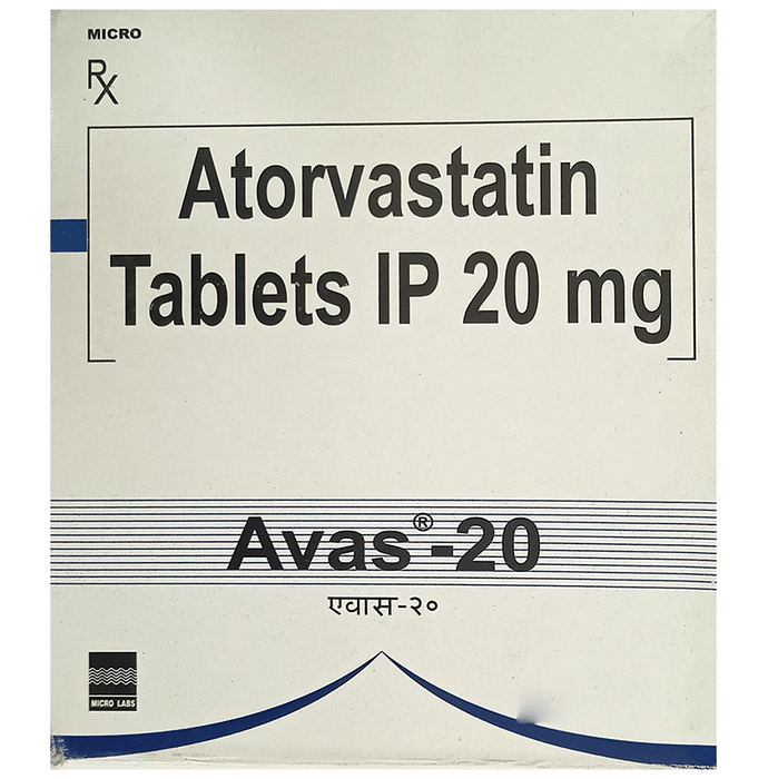 Manufacturer details:                                                                                Marketer details:Micro Labs Ltd | 27, RACE COURSE ROAD, BANGALORE-560 001, INDIA,                                                                                                Description:Avas 20 Tablet belongs to a group of medicines called statins. It is used to lower cholesterol and to reduce the risk of heart diseases. Cholesterol is a fatty substance that builds up in your blood vessels and causes narrowing, which may lead to a heart attack or stroke. Avas 20 Tablet is a widely prescribed medicine and is regarded as safe for long-term use when taken as per the doctor’s advice. It can be taken with a meal or on an empty stomach. You can take it at any time of the day but try to take it at about the same time each day. Most people with high cholesterol do not feel ill, but stopping your medicine may increase your cholesterol levels thereby increasing your risk of heart disease and stroke.It is important to have your cholesterol levels checked regularly. This medicine is only one part of the treatment program which should also include a healthy diet, regular exercise, smoking cessation, moderation of alcohol intake, and weight reduction. You can eat normally while taking this medicine, but try to avoid foods that are high in fat. Common side effects of this medicine include constipation, flatulence, dyspepsia, and abdominal pain. These are usually mild and disappear after a short time. Consult your doctor if they persist or if you notice any yellowing of your eyes or get repeated or unexplained muscle pains. This medicine should not be used in some conditions such as liver disease. Also, pregnant women and breastfeeding mothers should not take this medicine as it may harm the developing baby. Diabetic patients should monitor their blood sugar levels while taking this medicine, as it may lead to an increase in blood sugar levels. Your doctor may check your liver function before starting the treatment and monitor it regularly thereafter.