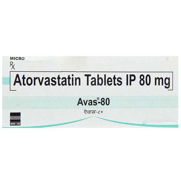 Manufacturer details:                                                                                Marketer details:Micro Labs Ltd | 27, RACE COURSE ROAD, BANGALORE-560 001, INDIA,                                                                                                Description:Avas 80 Tablet belongs to a group of medicines called statins. It is used to lower cholesterol and to reduce the risk of heart diseases. Cholesterol is a fatty substance that builds up in your blood vessels and causes narrowing, which may lead to a heart attack or stroke. Avas 80 Tablet is a widely prescribed medicine and is regarded as safe for long-term use when taken as per the doctor’s advice. It can be taken with a meal or on an empty stomach. You can take it at any time of the day but try to take it at about the same time each day. Most people with high cholesterol do not feel ill, but stopping your medicine may increase your cholesterol levels thereby increasing your risk of heart disease and stroke.It is important to have your cholesterol levels checked regularly. This medicine is only one part of the treatment program which should also include a healthy diet, regular exercise, smoking cessation, moderation of alcohol intake, and weight reduction. You can eat normally while taking this medicine, but try to avoid foods that are high in fat. Common side effects of this medicine include constipation, flatulence, dyspepsia, and abdominal pain. These are usually mild and disappear after a short time. Consult your doctor if they persist or if you notice any yellowing of your eyes or get repeated or unexplained muscle pains. This medicine should not be used in some conditions such as liver disease. Also, pregnant women and breastfeeding mothers should not take this medicine as it may harm the developing baby. Diabetic patients should monitor their blood sugar levels while taking this medicine, as it may lead to an increase in blood sugar levels. Your doctor may check your liver function before starting the treatment and monitor it regularly thereafter.