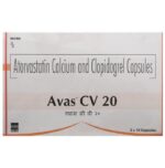 Manufacturer details: Marketer details:Micro Labs Ltd | 27, RACE COURSE ROAD, BANGALORE-560 001, INDIA, Description:Avas CV 20 Capsule is a combination of two medicines used to prevent heart attack and stroke. This medicine reduces the ‘__’bad’__’ cholesterol (LDL) and triglycerides (fats) levels. Moreover, it also decreases the formation of blood clots. Avas CV 20 Capsule should be taken with food to avoid stomach upset. You should take it regularly at evenly spaced intervals as per the schedule prescribed by your doctor. Taking it at the same time every day will help you remember to take it. The dose and duration of treatment will depend on what you are being treated for. Do not stop taking it until you have finished the complete course, even when you feel better. Lifestyle changes like low-fat diet, exercise and not smoking may help this medicine to work better.Nausea, abdominal pain, and headache are some common side effects of this medicine. This medicine increases your risk of bleeding, so it is important to be careful while shaving, cutting nails, using sharp objects, or engaging in contact sports (e.g., football, wrestling). Let your doctor know if you notice yellowing of the skin, muscle pain or dark urine.Before taking this medicine, tell your doctor if you have liver or kidney disease or you are suffering from bleeding disorder. You must tell your doctor if you are pregnant, planning pregnancy or breastfeeding. You should also let your healthcare team know all other medicines you are taking as they may affect, or be affected by this medicine.