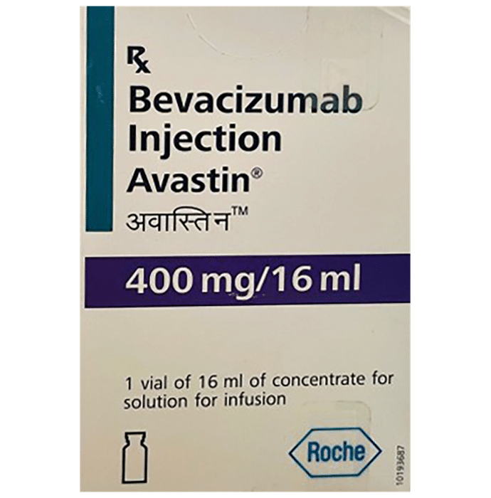 Manufacturer details:                                        Marketer details:Roche Products India Pvt Ltd | 1503, 15th Floor, ‘The Capital’, Plot no. C-70, Behind ICICI Bank, BKC, Bandra (E) , Mumbai 400051,                                                Description:Avastin 400mg Injection is an anticancer medication. It is used in the treatment of cancer of colon and rectum, non-small cell lung cancer, kidney cancer, brain tumor, ovarian and cervical cancer. It helps to prevent the growth of new blood vessels that feed tumors and stops tumors from growing. Avastin 400mg Injection is an effective medicine, first-line option when used together with other cancer medicines. It is given as an infusion. That means you get it through a small needle in your vein or through a port, which is a device placed under your skin. The doctor will decide your dose and duration and will check you for signs of an infusion reaction such as high blood pressure and trouble breathing. You keep taking Avastin 400mg Injection as long as your disease is controlled and your side effects are manageable. Your doctor will determine whether you should stop taking it or not. You may be advised to check blood pressure and levels of protein in urine while you are taking this medication.The most common side effects of this medicine include nosebleeds, headache, high blood pressure, rhinitis, protein in urine, change in taste, dry skin, bleeding, lacrimation disorder, back pain, and exfoliative dermatitis. Inform your doctor that you are taking this medication before undergoing any surgical procedure, as the drug can lower the ability of wound healing. Other than this, it also enhances your risk of bleeding thus if you notice any unusual bleeding or bleeding consult with your doctor immediately.Inform your doctor if you are pregnant, planning pregnancy or breastfeeding. Many other medicines can affect, or be affected by, this medicine so let your healthcare team know all medications you are using.There is a Patient Support Program/Patient Assistance Program available in India for this medicine, being managed by Tata 1mg. Please contact your prescribing doctor to know more about the same. You may also call on (1800-102-1618) for more details.