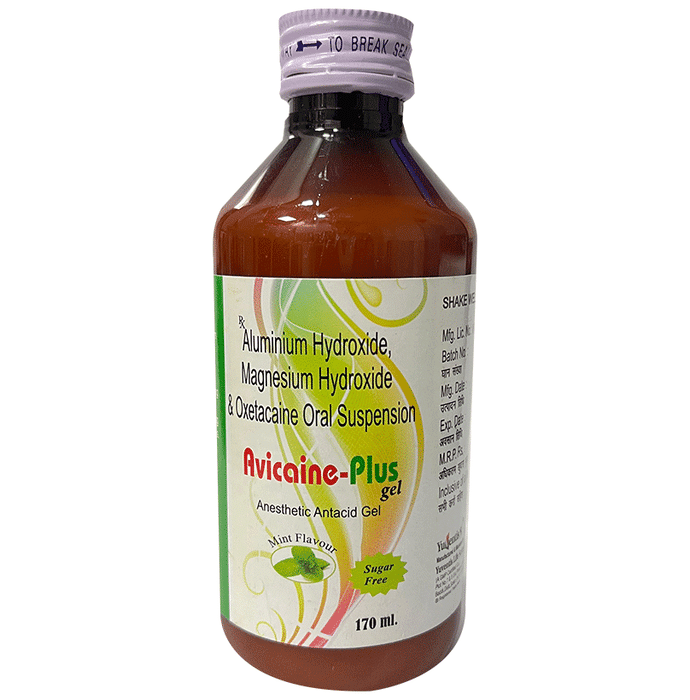 Manufacturer details: Marketer details:Yuventis Lifesciences | Plot no 7-8, Ext. Phase 3 HPSIDC,Baddi,Distt. Solan, (H.P.)173205, Description:Avicaine-Plus Mint Sugar Free Gel is a prescription medicine that is used in the treatment of acidity, stomach ulcer, and heartburn. It helps in relieving the symptoms of acidity and ulcers such as stomach pain, heartburn, or irritation. It also neutralizes excessive acid in the stomach. Avicaine-Plus Mint Sugar Free Gel is taken without food in a dose and duration as advised by the doctor. The dose you are given will depend on your condition and how you respond to the medicine. You should keep taking this medicine for as long as your doctor recommends. If you stop treatment too early your symptoms may come back and your condition may worsen. Let your healthcare team know about all other medications you are taking as some may affect, or be affected by this medicine. Do not take it for more than the recommended duration as long-term administration may have harmful effects on the health.The most common side effects are diarrhea, constipation, abdominal discomfort, and allergic reaction. Most of these are temporary and usually resolve with time. Contact your doctor straight away if you are at all concerned about any of these side effects. To overcome constipation, you should add fiber-rich foods to your diet and stay hydrated. Lifestyle modifications like having a fiber-rich diet, increase fluid intake and regular exercise can help you to get better results.Before taking this medicine, you should tell your doctor if you are pregnant, planning pregnancy, or breastfeeding. You should also tell your doctor if you have any kidney or liver diseases so that your doctor can prescribe a suitable dose for you.
