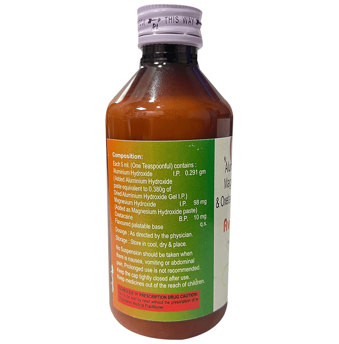 Marketer:Yuventis Lifesciences,Composition:Oxetacaine (10mg/5ml) + Aluminium Hydroxide (291mg/5ml) + Milk Of Magnesia (98mg/5ml),medicine_type:,