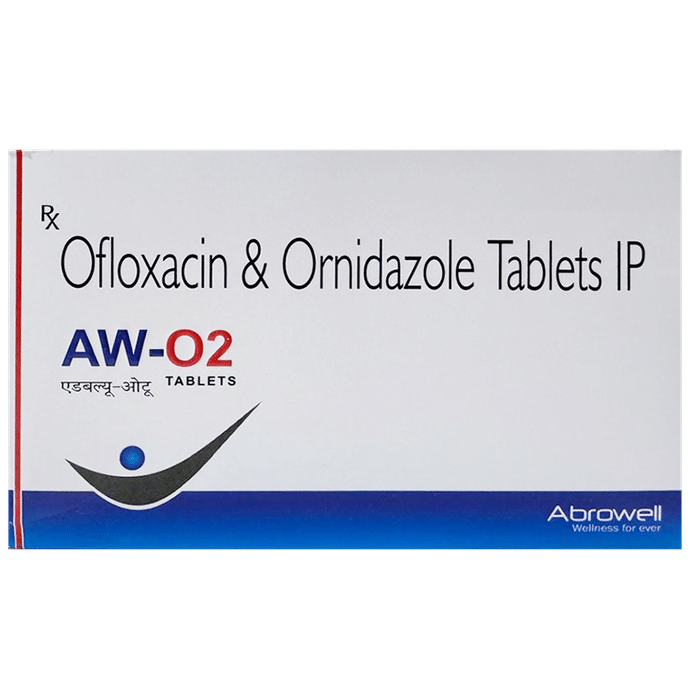 description:Aw-O2 Tablet is a combination of two antibiotics. It is used in the treatment of bacterial and parasitic infections. It effectively treats a wide range of bacterial infections that may occur in the teeth, lungs, gastrointestinal infections, urinary and genital tract. Aw-O2 Tablet is best taken with food. Take it at a fixed time to ensure better efficacy. Do not take more than the recommended dose, as it may have harmful effects on your body. If you miss a dose, take it as soon as you remember. The treatment must be completed even if you feel better to ensure a complete recovery.This medicine may lead to some side effects such as nausea, vomiting, stomach pain, loss of appetite, dizziness, and headache. To overcome any such side effects, it is advised to eat a healthy balanced diet and drink plenty of fluid. If any of the side effects get aggravated, consult your doctor immediately. If you experience any allergic reaction (rashes, itching, swelling, shortness of breath, etc.), you must seek immediate medical help.Before taking this medicine, you should tell your doctor if you have any problems with your liver or kidneys. Also, tell your doctor if you are on any medication for any health condition. Pregnant or breastfeeding women should also consult with the doctors before taking it. Avoid drinking alcohol as it can cause excessive dizziness with this medicine. It usually does not impair your ability to drive, but you should not drive if it makes you feel sleepy or dizzy. If you have known allergies to the medicine, refrain from using this medicine. It is advised to take proper rest during the course of treatment for the medicine to work effectively.