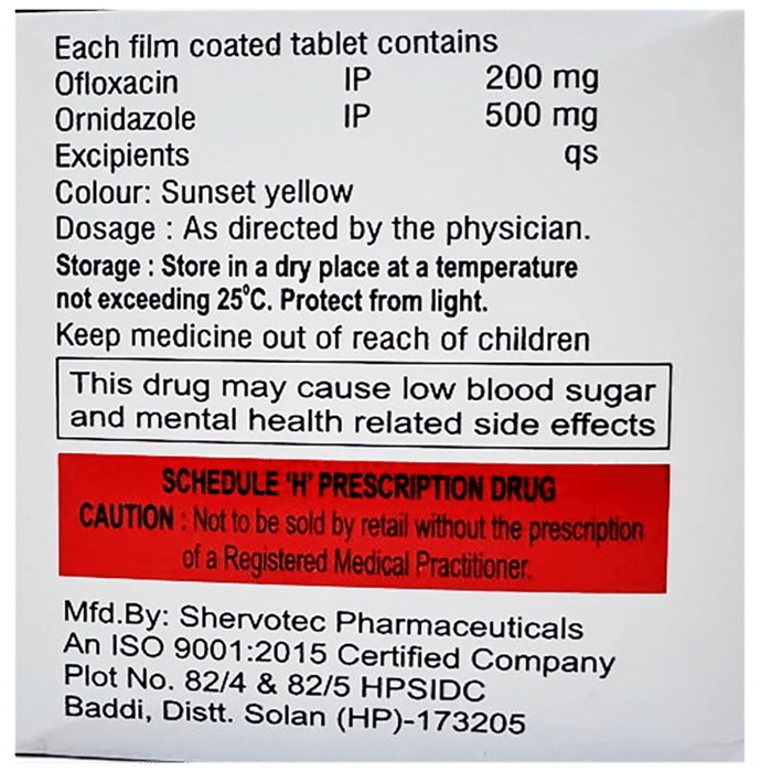 Marketer:Abrowell Pharmaceuticals,Composition:Ofloxacin (200mg) + Ornidazole (500mg),                       medicine_type:drugs,