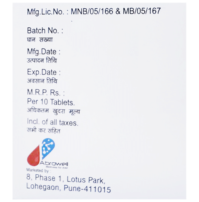 Packaging Detail:strip of 10 tablets, Package:Strip, Qty:10