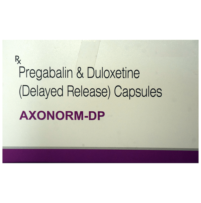 description:Axonorm-DP Capsule DR is used for the treatment of neuropathic pain. It decreases pain by controlling calcium channel activity of the nerve cells. It also increases the level of chemical messengers in the brain that helps maintain mental balance and stop the movement of pain signals in the brain. Axonorm-DP Capsule DR can be taken with or without food. However, it is advised to take it at the same time each day as this helps to maintain a consistent level of medicine in the body. Take this medicine in the dose and duration advised by your doctor as this is habit forming medicine. If you miss a dose of this medicine, take it as soon as you remember. Finish the full course of the treatment even if you feel better. It is important not to stop taking this medicine suddenly as it may worsen your symptoms.Some common side effects of this medicine include peripheral edema, nausea, headache, dryness of mouth, difficulty in concentration and blurred vision. It may cause dizziness and sleepiness, so do not drive or do anything that requires mental focus until you know how this medicine affects you. This medicine may cause weight gain and to control it, you should have a balanced diet and exercise regularly. It is important to inform your doctor if you develop any unusual changes in mood or behavior, new or worsening depression, or suicidal thoughts.Before taking this medicine let your doctor know if you suffer from kidney or liver disease. Your doctor should also know about all other medicines you are taking as many of these may make this medicine less effective or change the way it works. Inform your doctor if you are pregnant, planning pregnancy or breastfeeding.