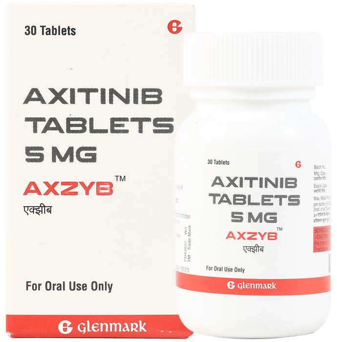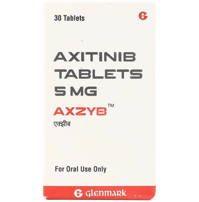 description:Axzyb Tablet is an anti-cancer medicine used in the treatment of kidney cancer. Axzyb Tablet can be taken with or without food, but try to have it at the same time every day to get the most benefits. Your doctor will decide what dose is necessary and how often you need to take it. This will depend on what you are being treated for and may change from time to time. You should take it exactly as your doctor has advised. Taking it in the wrong way or taking too much can cause very serious side effects. It may take several weeks or months for you to see or feel the benefits but do not stop taking it unless your doctor tells you to.The most common side effects of this medicine include high blood pressure, joint pain, and loss of appetite. Diarrhea, shortness of breath, can be serious sometimes so take medicine to treat it as prescribed by the doctor or stay hydrated. Your doctor may advise for regular blood pressure checkups while you are taking this medicine. Inform your doctor if you notice a severe headache, confusion, problems with your eyesight, nausea or vomiting.Before taking it, tell your doctor if you have thyroid problems, liver or bleeding problems or are taking any medicines to treat infections. Many other medicines can affect, or be affected by, this medicine so let your healthcare team know all medications you are using. This medicine is not recommended during pregnancy or while breastfeeding. The use of effective contraception by females during treatment is important to avoid pregnancy.