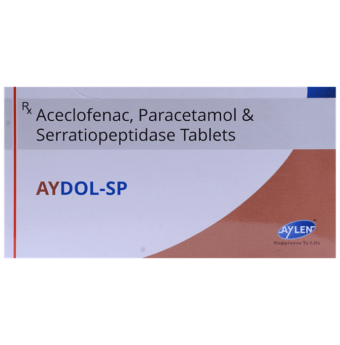 description:Aydol-SP Tablet is a combination medicine used to relieve pain and swelling in various conditions like muscle pain, joint pain, and postoperative pain. Thus, it effectively alleviates pain and inflammation in conditions like rheumatoid arthritis, ankylosing spondylitis, and osteoarthritis. Aydol-SP Tablet should be taken in the dose and duration as advised by your doctor. It should be taken with food or milk to prevent stomach upset. Taking the medicine regularly at the right times increases its effectiveness. It is important to keep taking the medicine regularly until your doctor tells you it is safe to stop.Nausea, vomiting, stomach pain, indigestion, heartburn, increased liver enzymes, dizziness,drowsiness, and diarrhea are some of the common side effects that might be observed on taking this medicine. Your doctor may regularly monitor your kidney function, liver function, and levels of blood components if you are taking this medicine for long-term treatment. Long-term use may lead to serious complications such as stomach bleeding and kidney problems. Aydol-SP Tablet is not recommended if you are pregnant or breastfeeding.