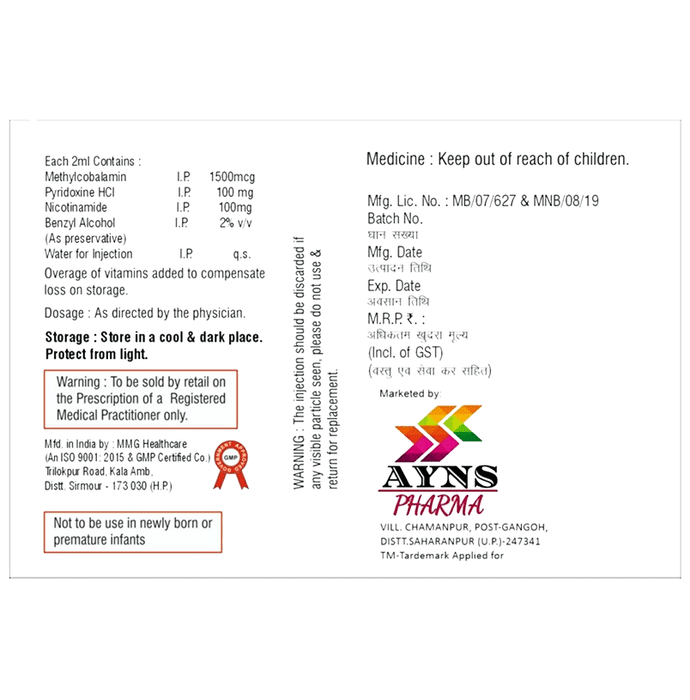 Marketer:Ayns Pharma,Composition:Methylcobalamin (1500mcg) + Vitamin B6 (Pyridoxine) (100mg) + Niacinamide (100mg),                                             medicine_type:drugs,