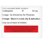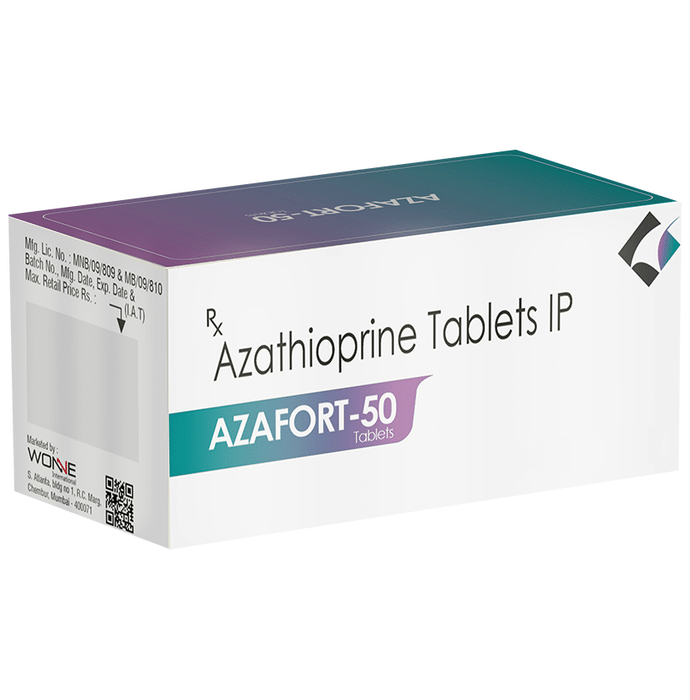 description:Azafort 50 Tablet belongs to a group of medicines called immunosuppressants. It is used with other medicines to prevent your body from rejecting an organ (such as a kidney, heart, or liver) after a transplant. It is also used in the treatment of rheumatoid arthritis. Azafort 50 Tablet works by weakening the body’s immune system, so it does not attack the new organ. The amount of medicine to be taken and how often you need to take it will depend on the type of transplant you have. Follow your doctor’s instructions on this. You should take it along with food. Take the medicine regularly to get the most benefit and keep taking it even if you feel well. If you stop taking it, you may increase the chances of rejecting your transplanted organ.It has many potential side effects. The most common are loss of appetite, nausea, and increased risk of bleeding. Because it suppresses your immune system, you may catch infections easily. There’s also an increased risk of developing some cancers for this reason. You should ask your doctor about side effects that may need urgent medical attention.Azafort 50 Tablet can cause birth defects and miscarriages so do not take it if you are pregnant, planning to become pregnant, or breastfeeding. You should talk to your doctor before taking this medicine if you have any signs of infection or if you have any unexpected bruising or bleeding. Your doctor also needs to know what other medicines you are taking as there are many which interact with this medicine and affect the way it works. You will have regular tests to check for any changes in the number of your blood cells.