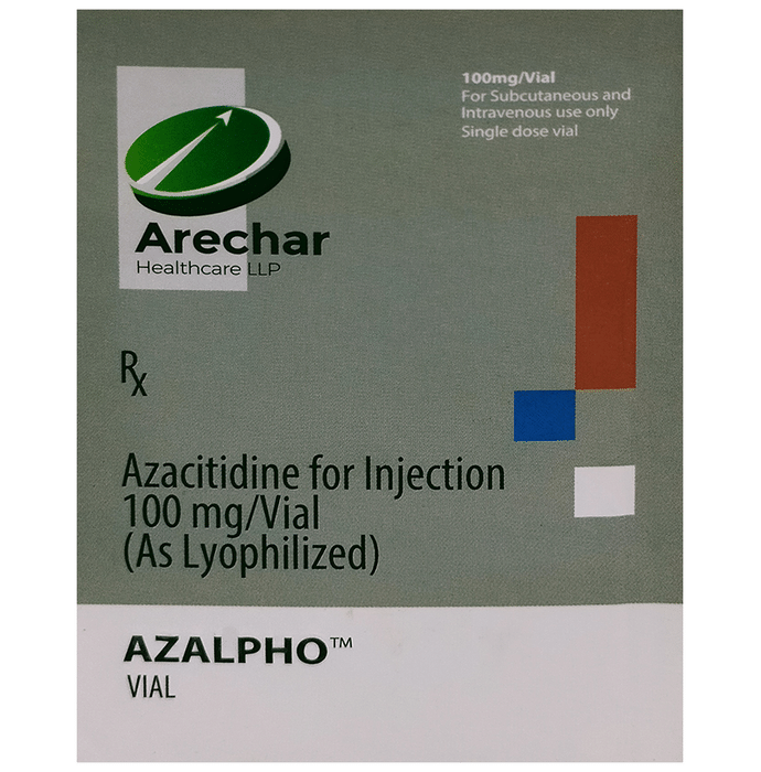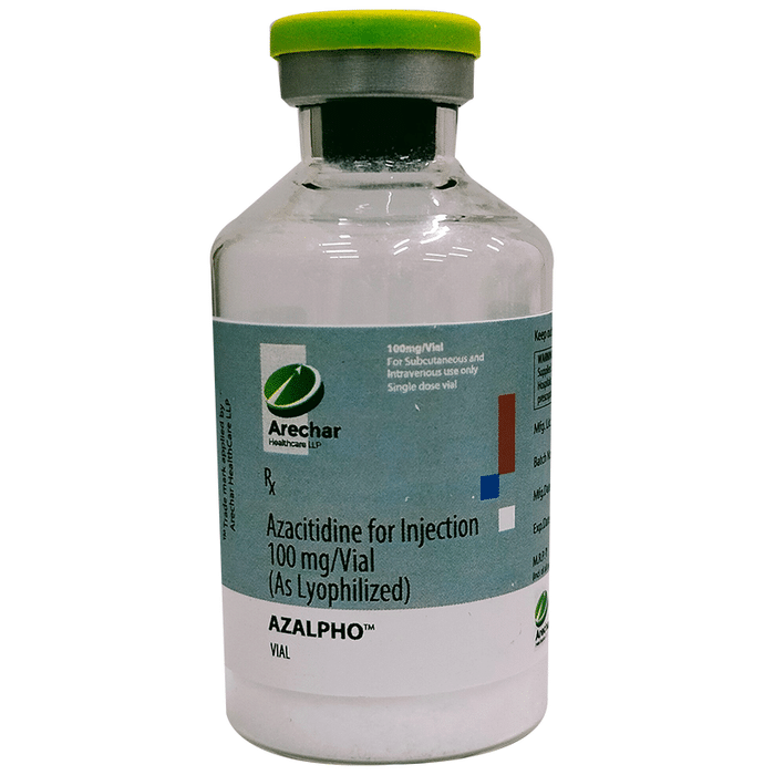 description:Azalpho Injection is used in the treatment of some kinds of blood cancer. It is used for the treatment of adult patients with all subtypes of Myelodysplastic Syndrome (MDS). It may be also used to treat other conditions, as determined by the doctor. Azalpho Injection is given as an injection under the medical supervision of a doctor. Your doctor will decide what dose is necessary and how often you need to take it. This will depend on what you are being treated for and may change from time to time. You should take it exactly as your doctor has advised. Taking it in the wrong way or taking too much can cause very serious side effects. It may take several weeks or months for you to see or feel the benefits but do not stop taking it unless your doctor tells you to.The most common side effects of this medicine include injection site reactions (pain, swelling, redness), vomiting, weakness, and nausea. If these bother you or appear serious, let your doctor know. There may be ways of reducing or preventing them. You must inform your doctor before taking any vaccination while on treatment with this medicine. Regular blood tests are required to check your blood cells along with the heart, liver, and kidney.Before taking it, tell your doctor if you have liver, or kidney problems or are taking any medicines to treat infections. Many other medicines can affect, or be affected by, this medicine so let your doctor know all medications you are using. This medicine is not recommended during pregnancy or while breastfeeding.