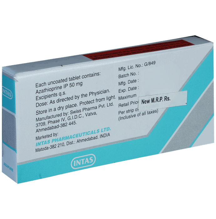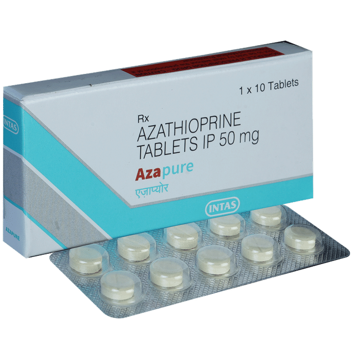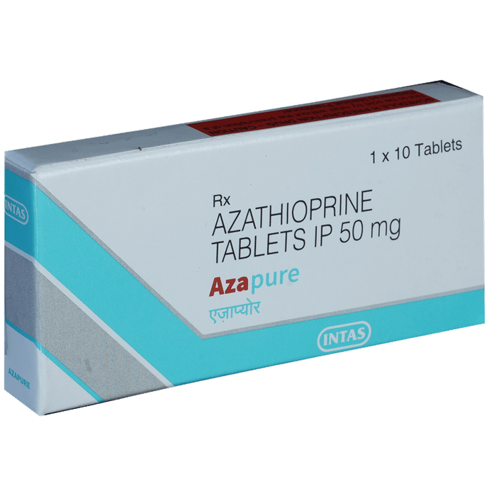 description:Azapure Tablet belongs to a group of medicines called immunosuppressants. It is used with other medicines to prevent your body from rejecting an organ (such as a kidney, heart, or liver) after a transplant. It is also used in the treatment of rheumatoid arthritis. Azapure Tablet works by weakening the body’s immune system, so it does not attack the new organ. The amount of medicine to be taken and how often you need to take it will depend on the type of transplant you have. Follow your doctor’s instructions on this. You should take it along with food. Take the medicine regularly to get the most benefit and keep taking it even if you feel well. If you stop taking it, you may increase the chances of rejecting your transplanted organ.It has many potential side effects. The most common are loss of appetite, nausea, and increased risk of bleeding. Because it suppresses your immune system, you may catch infections easily. There’s also an increased risk of developing some cancers for this reason. You should ask your doctor about side effects that may need urgent medical attention.Azapure Tablet can cause birth defects and miscarriages so do not take it if you are pregnant, planning to become pregnant, or breastfeeding. You should talk to your doctor before taking this medicine if you have any signs of infection or if you have any unexpected bruising or bleeding. Your doctor also needs to know what other medicines you are taking as there are many which interact with this medicine and affect the way it works. You will have regular tests to check for any changes in the number of your blood cells.