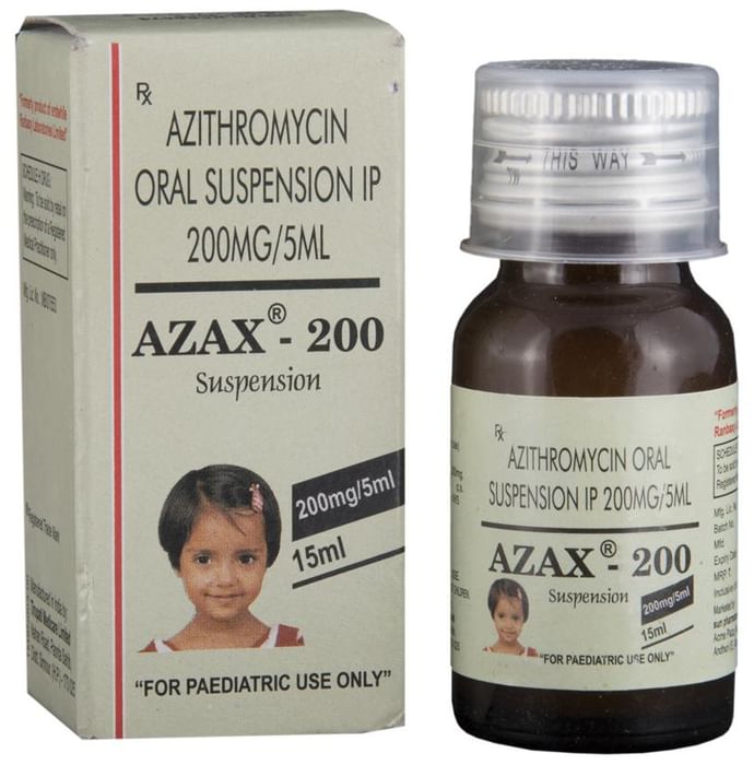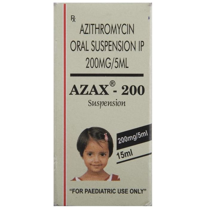 description:Azax 200 Suspension is an antibiotic medication. It is commonly given to children for the treatment of a wide range of bacterial infections targeting the ear, eyes, nose, throat, lungs, skin, and gastrointestinal tract. Azax 200 Suspension works by inhibiting the growth of the infection-causing bacteria and stopping it from multiplying. As a result of this, the spread of the infection is disabled. Azax 200 Suspension is usually given once a day, preferably in the morning. However, in the case of typhoid, it is to be given twice. Give it with or without food at about the same time each day. However, it is best given with food since children often have a sensitive stomach and could easily get a stomach upset.Medicine dose depends on the type of infection your child has, its severity, and your child’s age and body weight. So stick to the dose, time, and way prescribed by the doctor. In case your child vomits within 30 minutes of taking this medicine, give the same dose again.Your child may start to feel better within 2 days of regular dosing. However, you must still complete the full prescribed course of the medicine and never stop it abruptly as that may worsen your child’s condition or increase the risk of reinfection. Some of the minor and temporary side effects of this medicine include vomiting, diarrhea, nausea, and stomach pain. Usually, these episodes subside once your child’s body adapts to the medicine. However, in case these effects persist or become bothersome for your child, consult your child’s doctor without any delay.Inform your child’s doctor about any previous episode of any allergy, heart problem, liver impairment, and kidney malfunction. Knowing the child’s medical history is critical for dose alterations and for planning your child’s overall treatment.