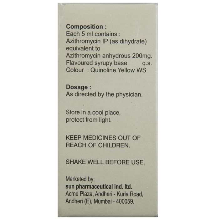 Marketer:Sun Pharmaceutical Industries Ltd,Composition:Azithromycin (200mg/5ml),                                             medicine_type:drugs,