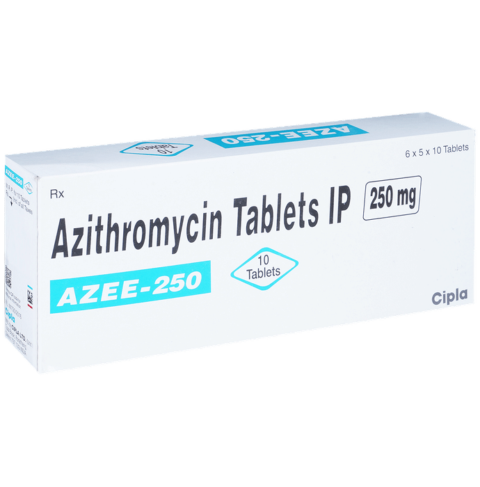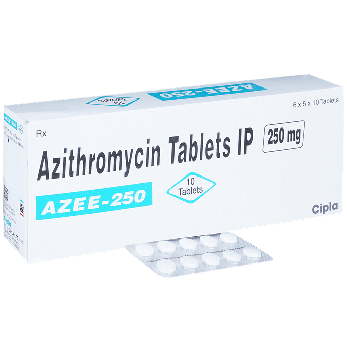 description:Azee 250 Tablet is an antibiotic used to treat various types of bacterial infections of the respiratory tract, ear, nose, throat, lungs, skin, and eye in adults and children. It is also effective in typhoid fever and some sexually transmitted diseases like gonorrhea.Azee 250 Tablet is taken orally, preferably one hour before or 2 hours after a meal. It should be used regularly at evenly spaced time intervals as prescribed by your doctor. Do not skip any doses and finish the full course of treatment even if you feel better. Stopping the medicine too early may lead to the return or worsening of the infection.Commonly seen side effects seen with this medicine include vomiting, nausea, stomach pain, headache, and diarrhea. These are usually temporary and subside with the completion of treatment. Consult your doctor if you find these side effects worry you or persist for a longer duration.Do not use Azee 250 Tablet if you have a history of cholestatic jaundice or hepatic dysfunction that happened with the use of azithromycin. Inform your doctor if you have any previous history of allergy or heart problems before taking this medicine. Pregnant or breastfeeding women should consult their doctor before using this medicine.