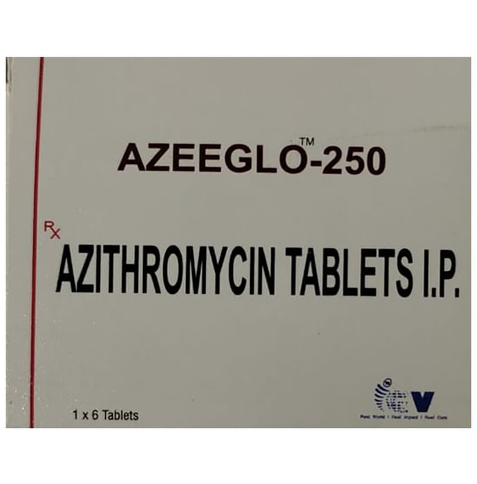 description:Azeeglo 250 Tablet is an antibiotic used to treat various types of bacterial infections of the respiratory tract, ear, nose, throat, lungs, skin, and eye in adults and children. It is also effective in typhoid fever and some sexually transmitted diseases like gonorrhea. Azeeglo 250 Tablet is taken orally, preferably one hour before or 2 hours after a meal. It should be used regularly at evenly spaced time intervals as prescribed by your doctor. Do not skip any doses and finish the full course of treatment even if you feel better. Stopping the medicine too early may lead to the return or worsening of the infection.Commonly seen side effects seen with this medicine include vomiting, nausea, stomach pain, headache, and diarrhea. These are usually temporary and subside with the completion of treatment. Consult your doctor if you find these side effects worry you or persist for a longer duration.Do not use Azeeglo 250 Tablet if you have a history of cholestatic jaundice or hepatic dysfunction that happened with the use of azithromycin. Inform your doctor if you have any previous history of allergy or heart problems before taking this medicine. Pregnant or breastfeeding women should consult their doctor before using this medicine.