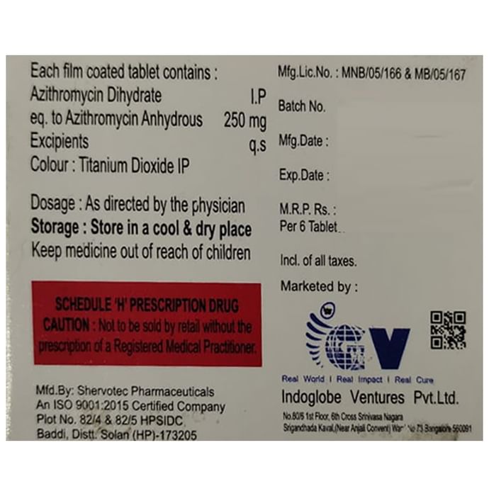 Marketer:Indoglobe Ventures Private Limited,Composition:Azithromycin (250mg),                                             medicine_type:drugs,