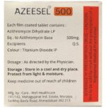 description:Azeesel 500 Tablet is an antibiotic used to treat various types of bacterial infections of the respiratory tract, ear, nose, throat, lungs, skin, and eye in adults and children. It is also effective in typhoid fever and some sexually transmitted diseases like gonorrhea. Azeesel 500 Tablet is taken orally, preferably one hour before or 2 hours after a meal. It should be used regularly at evenly spaced time intervals as prescribed by your doctor. Do not skip any doses and finish the full course of treatment even if you feel better. Stopping the medicine too early may lead to the return or worsening of the infection.Commonly seen side effects seen with this medicine include vomiting, nausea, stomach pain, headache, and diarrhea. These are usually temporary and subside with the completion of treatment. Consult your doctor if you find these side effects worry you or persist for a longer duration.Do not use Azeesel 500 Tablet if you have a history of cholestatic jaundice or hepatic dysfunction that happened with the use of azithromycin. Inform your doctor if you have any previous history of allergy or heart problems before taking this medicine. Pregnant or breastfeeding women should consult their doctor before using this medicine.