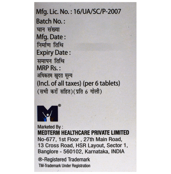 Packaging Detail:strip of 6 tablets, Package:Strip, Qty:6