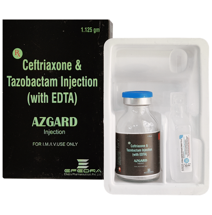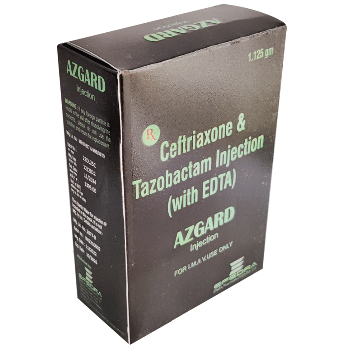 description:Azgard Injection is a combination medicine. It is prescribed to treat various types of bacterial infections. It fights against the microorganisms to prevent their growth and further spread of the infection. Azgard Injection should only be administered under the supervision of a healthcare professional. Do not miss any scheduled appointments for taking this medicine. The course of the treatment must be completed even if you feel better. Sudden discontinuation of the treatment may affect the potency of the medicine.Some common side effects of this medicine are nausea, vomiting, diarrhea, indigestion, etc. If any of the side effects get aggravated, you must consult your doctor immediately. If you experience any allergic reaction (rashes, itching, swelling, shortness of breath, etc.), you must seek immediate medical help.Before taking this medicine, you should tell your doctor if you are taking any medicines for any health condition. Pregnant or breastfeeding women should also consult with their doctor before taking it. Avoid drinking alcohol as it can cause excessive drowsiness with this medicine. It usually does not impair your ability to drive, but you should not drive if it makes you feel sleepy or dizzy. You must take adequate rest for a faster recovery, also take a healthy diet and drink plenty of water. Your doctor may ask for a few laboratory and diagnostic tests to know the effects of the medicine on your body.