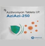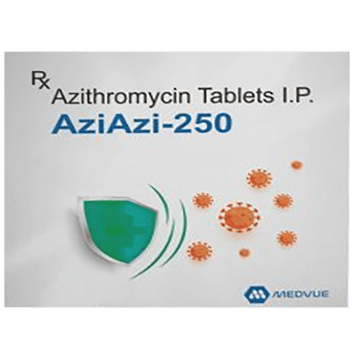 description:AziAzi 250 Tablet is an antibiotic used to treat various types of bacterial infections of the respiratory tract, ear, nose, throat, lungs, skin, and eye in adults and children. It is also effective in typhoid fever and some sexually transmitted diseases like gonorrhea. AziAzi 250 Tablet is taken orally, preferably one hour before or 2 hours after a meal. It should be used regularly at evenly spaced time intervals as prescribed by your doctor. Do not skip any doses and finish the full course of treatment even if you feel better. Stopping the medicine too early may lead to the return or worsening of the infection.Commonly seen side effects seen with this medicine include vomiting, nausea, stomach pain, headache, and diarrhea. These are usually temporary and subside with the completion of treatment. Consult your doctor if you find these side effects worry you or persist for a longer duration.Do not use AziAzi 250 Tablet if you have a history of cholestatic jaundice or hepatic dysfunction that happened with the use of azithromycin. Inform your doctor if you have any previous history of allergy or heart problems before taking this medicine. Pregnant or breastfeeding women should consult their doctor before using this medicine.