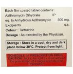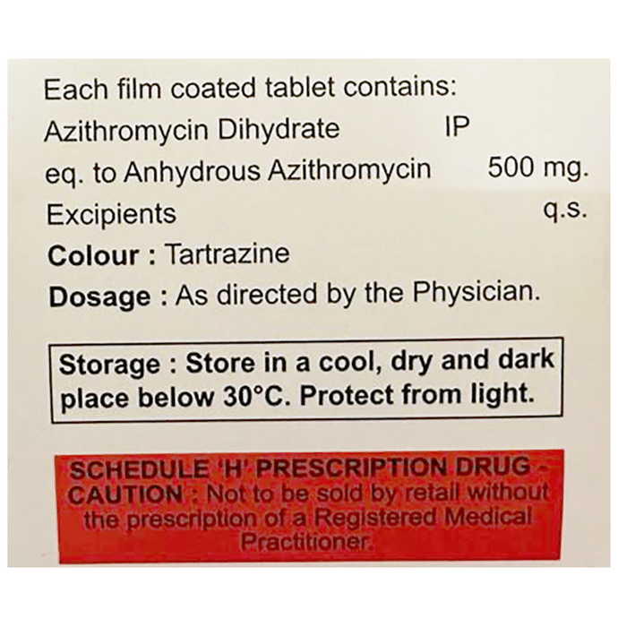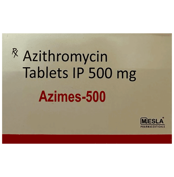 Azimes 500 Tablet is an antibiotic used to treat various types of bacterial infections of the respiratory tract, ear, nose, throat, lungs, skin, and eye in adults and children. It is also effective in typhoid fever and some sexually transmitted diseases like gonorrhea. Azimes 500 Tablet is taken orally, preferably one hour before or 2 hours after a meal. It should be used regularly at evenly spaced time intervals as prescribed by your doctor. Do not skip any doses and finish the full course of treatment even if you feel better. Stopping the medicine too early may lead to the return or worsening of the infection.Commonly seen side effects seen with this medicine include vomiting, nausea, stomach pain, headache, and diarrhea. These are usually temporary and subside with the completion of treatment. Consult your doctor if you find these side effects worry you or persist for a longer duration.Do not use Azimes 500 Tablet if you have a history of cholestatic jaundice or hepatic dysfunction that happened with the use of azithromycin. Inform your doctor if you have any previous history of allergy or heart problems before taking this medicine. Pregnant or breastfeeding women should consult their doctor before using this medicine.
