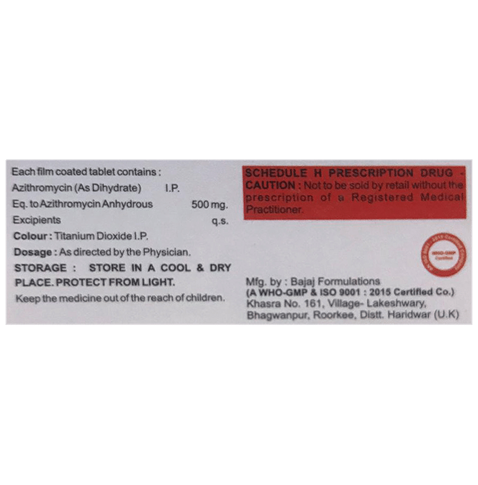 Marketer:Doctor Wonder Private Limited,Composition:Azithromycin (500mg),                                             medicine_type:drugs,