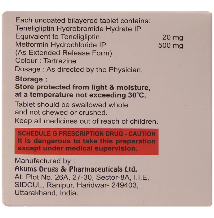 Marketer:Daylon Healthcare,Composition:Metformin (500mg) + Teneligliptin (20mg),                                             medicine_type:drugs,