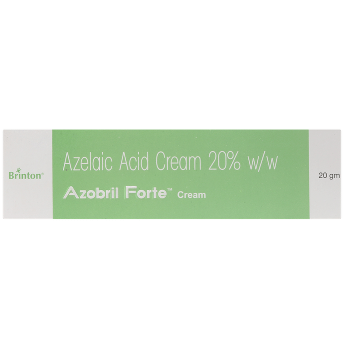description:Azobril Forte 20% Cream is used in the treatment of acne (pimples). It effectively relieves symptoms such as lumps, redness, and swelling associated with different forms of acne. It works by killing acne-causing bacteria. Azobril Forte 20% Cream is for external use only. You should always use it exactly as prescribed. Both the affected area and your hands should be clean and dry before application. Use this medicine regularly to get the most benefit from it. Do not use more than you need as it will not clear your condition faster and some side effects may be increased. If your condition goes on for longer than four weeks or gets worse at any time, let your doctor know. You can help this medication work better by keeping the affected areas clean.Azobril Forte 20% Cream has a few potential side effects but not everyone will get them. These include application site reactions like burning, irritation, itching, and redness. Let your doctor know if you’re bothered by these or they do not go away. Avoid getting the medicine in your eye. In case of accidental contact, rinse thoroughly with water.If you are pregnant, breastfeeding, or plan to become pregnant, you should consult your doctor before using this medicine.