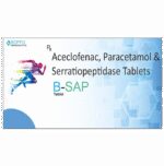 description:B-SAP Tablet is a combination medicine used to relieve pain and swelling in various conditions like muscle pain, joint pain, and postoperative pain. Thus, it effectively alleviates pain and inflammation in conditions like rheumatoid arthritis, ankylosing spondylitis, and osteoarthritis. B-SAP Tablet should be taken in the dose and duration as advised by your doctor. It should be taken with food or milk to prevent stomach upset. Taking the medicine regularly at the right times increases its effectiveness. It is important to keep taking the medicine regularly until your doctor tells you it is safe to stop.Nausea, vomiting, stomach pain, indigestion, heartburn, increased liver enzymes, dizziness,drowsiness, and diarrhea are some of the common side effects that might be observed on taking this medicine. Your doctor may regularly monitor your kidney function, liver function, and levels of blood components if you are taking this medicine for long-term treatment. Long-term use may lead to serious complications such as stomach bleeding and kidney problems. B-SAP Tablet is not recommended if you are pregnant or breastfeeding.