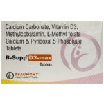 In Nutritional deficiencies B-Supp D3-max Tablet is a nutritional supplement that is used to prevent or treat low blood calcium levels in people who do not get enough calcium from their diets. It improves the level of calcium in the body. This helps keep your bones strong and healthy and reduce the risk of any bone disorders like osteoporosis. Calcium is also necessary for normal functioning of nerves, cells, muscle and heart. This combination contains other vitamins and minerals that help in strengthening the immune system, improve metabolism of the body and aid in the proper functioning of the nervous system. Taking B-Supp D3-max Tablet improves general health and enhances the quality of life.