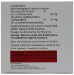 description:B4ET-DSR Capsule is a prescription medicine used to treat gastroesophageal reflux disease (Acid reflux), dyspepsia (indigestion), and gastritis. It helps treat the conditions by reducing the amount of acid in the stomach thereby relieving symptoms of acidity such as heartburn, stomach pain, or irritation. B4ET-DSR Capsule also neutralizes the acid in the stomach and promotes easy passage of gas to reduce stomach discomfort. It is taken without food in a dose and duration as advised by the doctor. The dose you are given will depend on your condition and how you respond to the medicine. You should keep taking B4ET-DSR Capsule for as long as your doctor recommends. If you stop treatment too early your symptoms may come back and your condition may worsen. Let your healthcare team know about all other medications you are taking as some may affect, or be affected by this medicine.The most common side effects of B4ET-DSR Capsule are diarrhea, vomiting, stomach pain, flatulence, dryness in the mouth, and headache. Most of these are temporary and usually resolve with time. Contact your doctor straight away if you are at all concerned about any of these side effects. This medicine may cause dizziness and sleepiness, so do not drive or do anything that requires mental focus until you know how this medicine affects you. Avoid drinking alcohol while taking B4ET-DSR Capsule as it can worsen your sleepiness. Lifestyle modifications like having cold milk and avoiding hot tea, coffee, spicy food, or chocolate can help you to get better results.Before you start taking this medicine it is important to inform your doctor if you are suffering from kidney or liver disease. You should also tell your doctor if you are pregnant, planning pregnancy, or breastfeeding.