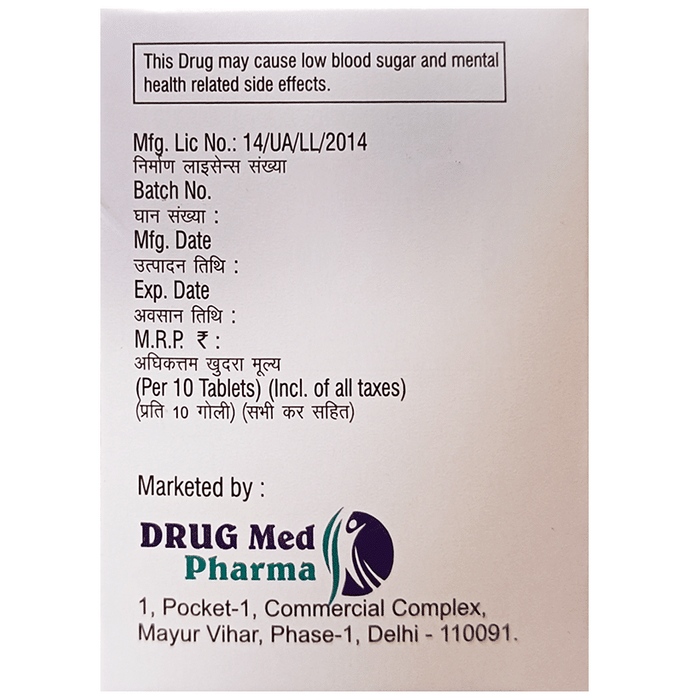 Packaging Detail:strip of 10 tablets, Package:Strip, Qty:10