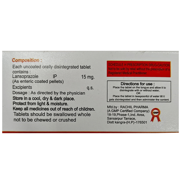description:Baby-Lanz Orally Disintegrating Tablet Strawberry is a medicine that reduces the amount of acid produced in your stomach. It is used for treating acid-related diseases of the stomach and intestine such as acid reflux, peptic ulcer disease, and some other stomach conditions associated with excessive acid production. Baby-Lanz Orally Disintegrating Tablet Strawberry is also used to prevent stomach ulcers and acidity that may be seen with the prolonged use of painkillers. It belongs to a class of medicines known as proton pump inhibitors (PPIs). This medicine should be taken one hour before a meal, preferably in the morning. The dose will depend on your underlying condition and how you respond to the medicine. You should keep on taking it as prescribed even if your symptoms disappear quickly. You can increase the efficiency of the treatment by eating smaller meals more often and avoiding caffeinated drinks (like tea and coffee), and spicy or fatty foods.The most common side effects observed with this medicine include nausea, headache, flatulence, abdominal pain, constipation, and diarrhea. These symptoms are generally mild but if they bother you or do not go away, consult your doctor. Long-term use of this medicine may lead to an increased risk of side effects. For instance, using this medicine for more than 1 year may increase your risk for bone fractures, especially with higher doses. Talk to your doctor about ways to prevent bone loss (osteoporosis), like taking calcium and vitamin D supplements.Before taking this medicine, you need to tell your doctor if you have severe liver problems, are taking medicines for HIV, have ever had an allergic reaction to similar medicines in the past, or suffer from bone loss (osteoporosis). Pregnant or breastfeeding women should also consult their doctor before taking it.