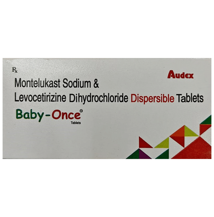 description:Baby-Once Tablet DT is commonly prescribed in children to treat symptoms of allergy such as runny nose, sneezing, itching, swelling, congestion, and watery eyes. It may also help in the treatment of asthma and skin allergies. Give this medicine to your child at a fixed time before or after food in the prescribed dose, time, and way. For asthma, prefer giving Baby-Once Tablet DT in the evening or 2 hours before physical activity. For allergy, it is best to give it either in the morning or in the evening, depending upon the time of onset of symptoms. In case your child has both, prefer giving it in the evening. If your child vomits within 30 minutes of taking this medicine, give the same dose again, but skip it if it’s already time for the next dose.Your child may start to feel better after a few regular doses. However, you must still complete the prescribed dose to ensure maximum benefit. Moreover, stopping the medicine abruptly may worsen your child’s condition. This medicine may cause some minor and temporary side effects like vomiting, diarrhea, nausea, dizziness, dry mouth, rash, and headache. Usually, these episodes subside once your child’s body adapts to the medicine. However, in case these effects persist or start bothering your child, consult your child’s doctor without any delay.Let your child’s doctor know if your child is already taking any medicines. Also, narrate your child’s complete medical history, including any prior episodes of allergy, heart problem, blood disorder, vascular disorders, birth defects, airway obstruction, lung anomaly, skin disorder, liver impairment, and kidney malfunction. This information is critical for dose alterations and in planning your child’s overall treatment.