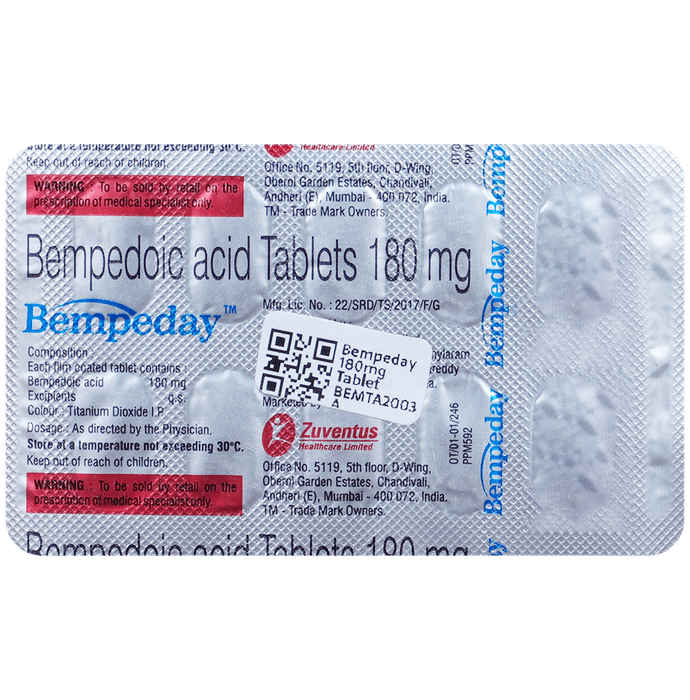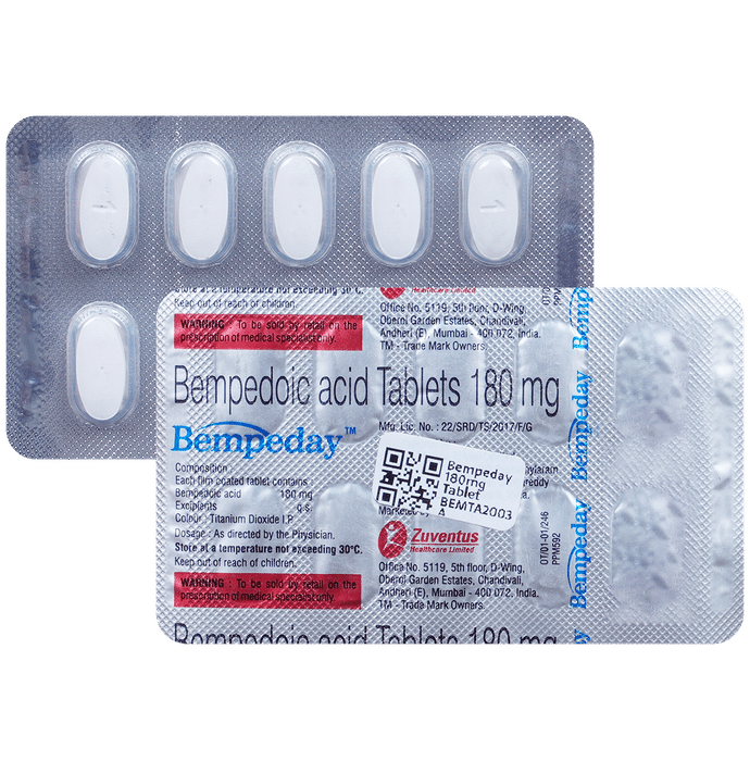 Marketer:Zuventus Healthcare Ltd,Composition:Bempedoic acid (180mg),                                             medicine_type:drugs,