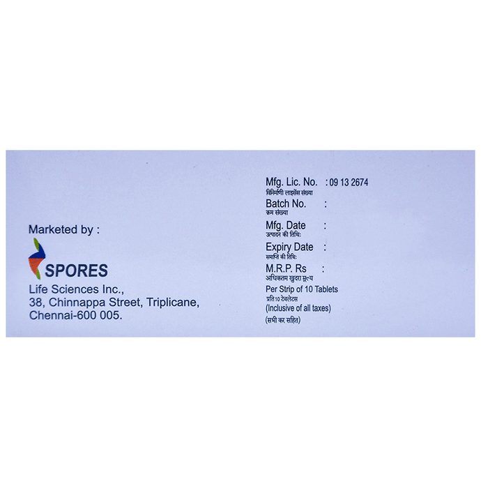 Packaging Detail:strip of 10 tablets, Package:Strip, Qty:10