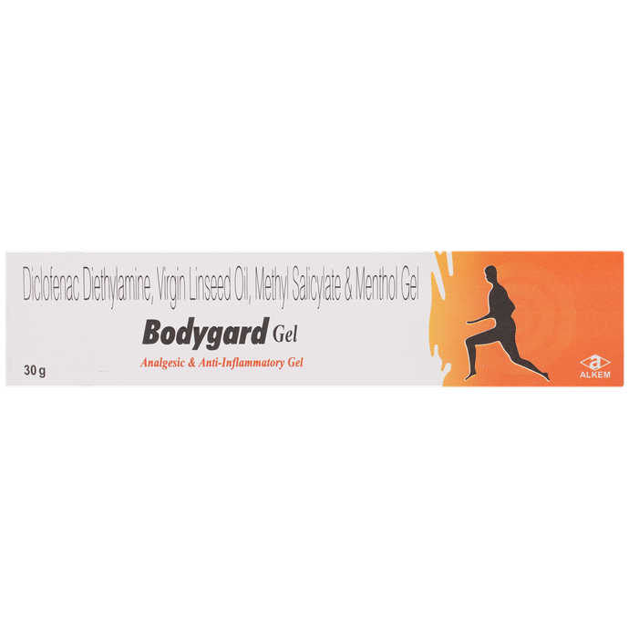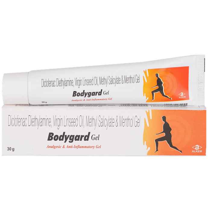 description:Bodygard Gel is used to relieve pain and reduce swelling in your joints and muscles. It can be used to treat various injuries such as sprains, strains and bruises. It can also be used for tendonitis (such as tennis elbow) and osteoarthritis. Bodygard Gel may be used 2 to 4 times a day on the affected area depending on how severe your condition is. It should be applied slowly and evenly to the skin until it is rubbed in. You should not use it too often and you should not cover the treated area with a bandage or plaster.It is a safe medicine with few side effects, but you may get a skin rash, itching, reddening or burning of the skin. Occasionally a skin rash may be a sign of severe allergic reaction. Tell your doctor straight away if you get a rash with blistering. Bodygard Gel is not recommended if you are pregnant or breastfeeding and you should not use it if you are already taking diclofenac (or other similar) tablets.