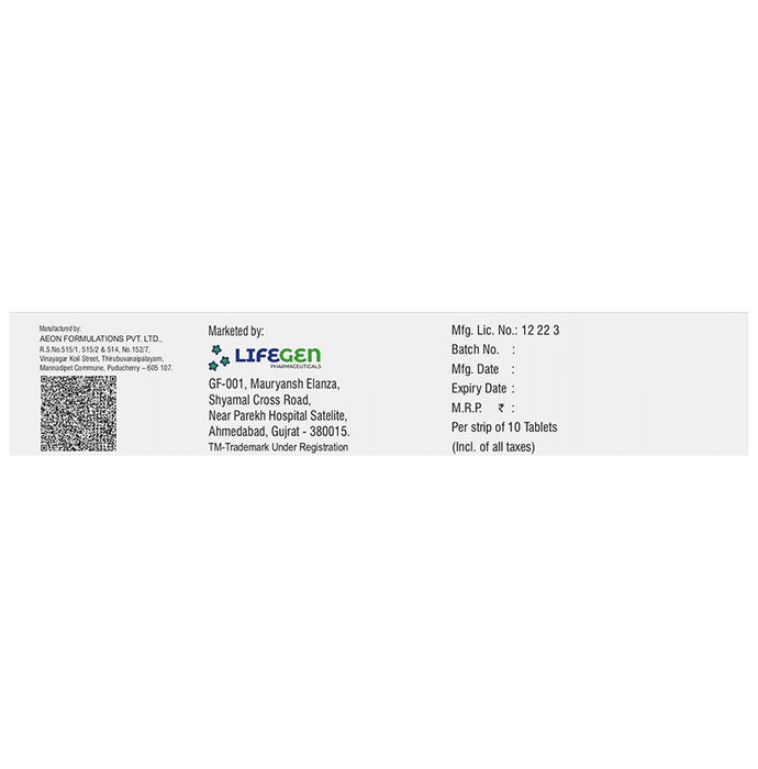 Manufacturer details:,                                   Marketer details:Lifegen Pharmaceuticals | GF-001, Mauryansh Elanza, Shyamal Cross Road, Near Parekh Hospital Satelite, Ahmedabad, Gujrat-380 015.