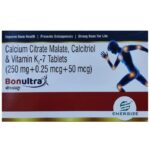 In Calcium deficiency Bonultra Tablet is a nutritional supplement that is used to prevent or treat low blood calcium levels in people who do not get enough calcium from their diets. It improves the level of calcium in the body. This helps keep your bones strong and healthy and reduce the risk of any bone disorders like osteoporosis. Calcium is also necessary for normal functioning of nerves, cells, muscle and heart.