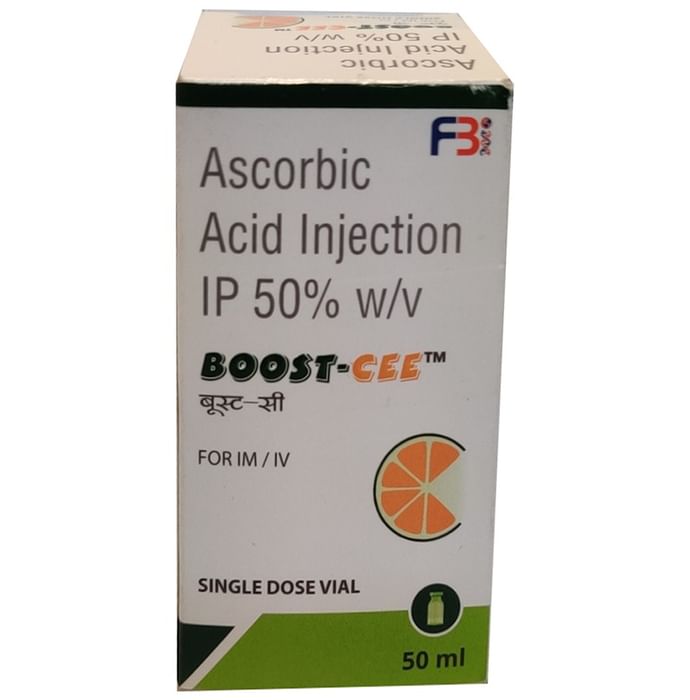 description:Boost-CEE Injection is a nutritional supplement. It is used to treat vitamin C deficiency in the body. It is usually taken when your diet does not provide enough vitamin C. It also helps in treating certain conditions caused due to low level of vitamin C in the body. Boost-CEE Injection is generally administered by a healthcare professional. You should not self-administer it at home. This medicine may be only part of a complete program of treatment that also includes making changes to your diet and taking vitamin supplements. Learn about the foods you should eat to make sure you get enough vitamin C in your diet. You should not take more or use it for longer than recommended.Boost-CEE Injection is generally safe with little or no side effects. However, it may pain, redness, or swelling at the site of injection in some people. Before taking this medicine, let your doctor know any other medicines you are taking. Some other medicines can decrease the absorption of vitamin C or interact with it. It is important to ask advice from the doctor before you take any other vitamin supplements.