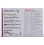 description:Bosentas 125 Tablet is a prescription medicine used to treat pulmonary arterial hypertension (high pressure in the blood vessels that carry blood from the heart to the lungs). It even helps to improve your quality of life, exercising ability and delay in disease progression. Bosentas 125 Tablet should be taken with or without food. This medicine should be used regularly to get the most benefit from it. The dose and how often you take it depends on what you are taking it for. Your doctor will decide how much you need to improve your symptoms. You should take this medicine for as long as it is prescribed for you.The most common side effects of this medicine include headache, swelling of the legs and ankles, and diarrhea. If these bother you or appear serious, let your doctor know. There may be ways of reducing or preventing them. Some serious side effects which mean your doctor should know immediately include Anemia (low number of red blood cells) and abnormal liver function such as nausea, vomiting, dark urine, fever, and dark urine. Your doctor might check you for blood tests to check for anemia and liver function.Before taking this medicine, let your doctor know if you have liver dysfunctioning. Inform your doctor if you are pregnant or breastfeeding. Women are suggested to use reliable contraceptive pills to avoid pregnancy and should continue even after one month of stopping the treatment. Your doctor should also know about all other medicines you are taking as many of these may make this medicine less effective or change the way it works.
