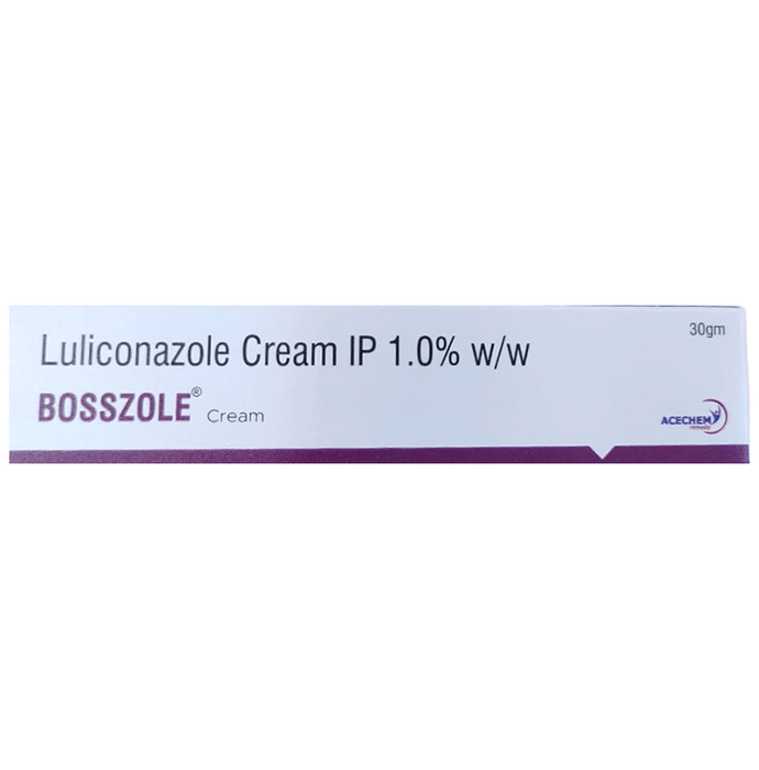 description:Bosszole Cream is an antifungal medicine used to treat fungal infections of the skin such as athlete’s foot, Dhobie Itch, thrush, ringworm, and dry, flaky skin. It works by killing the fungi that cause these infections. Bosszole Cream should be used in the dose and duration as prescribed by your doctor. Do not use it more often or in higher quantity than prescribed as this will not clear your condition faster and may only increase the side effects. Skin infections will usually get better after 2 to 4 weeks of use. Let your doctor know if your condition does not improve. The effect of the medicine can be increased by keeping the affected area clean and dry, and washing hands before and after use. If you have athlete’s foot, wash your socks or tights thoroughly and change your shoes daily if possible.The most common side effects of this medicine include burning sensation, irritation, itching, and redness at the site of application and skin dryness. These are not usually serious and resolve with time. Call your doctor if these persist or bother you. Seek emergency help if you notice signs of an allergic reaction such as a rash, swelling of the lips, throat, or face, swallowing or breathing problems, and nausea. Avoid direct contact with your eyes. In case of accidental contact, wash your eyes with water and seek immediate medical attention.It is not likely that other medicines you take by mouth or injection will affect the way this medicine works, but talk to your doctor before using it if you have recently used another medicine that contains a steroid or had an allergic reaction to another antifungal medicine. Ask your doctor before using this medicine if you are pregnant or breastfeeding.
